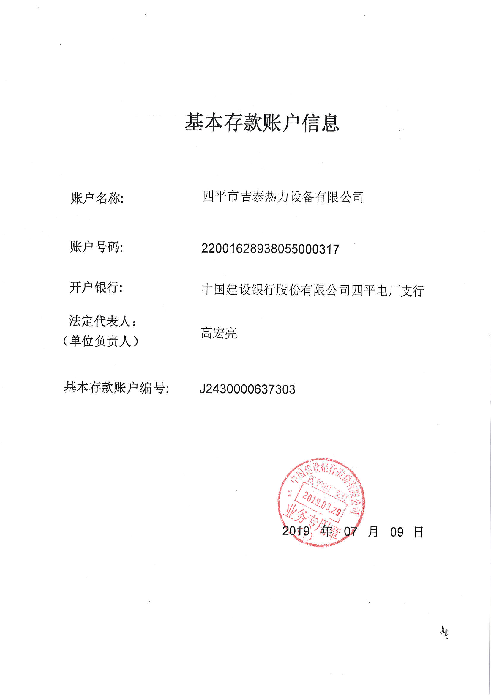 • SIPING JITAI HEAT EXCHANGE EQUIPMENT CO.,LTD. 四平市吉泰熱力設(shè)備有限公司